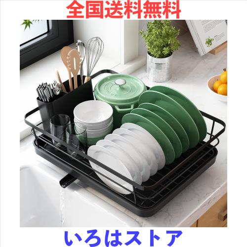 Kitsure 食器水切りラック - スペース節約型の水切りかご カトラリーボックス付き食器乾燥ラック 奥行き30.5cm×幅39.6cm ブラック