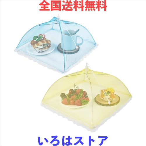 【素材とサイズ】色:ブルー/イエロー、素材:メッシュ+合金ブラケット、サイズ:32cm*32cm 2個セットでお届けいたします。レースがテーブルを覆い、ハエや爬虫類が食べ物に触れないようにします