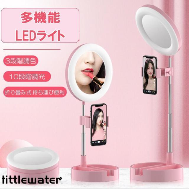 リングライト 折畳み式 スタンド一体式 LED 撮影 照明 収納 鏡 ビデオ通話 動画撮影 映画鑑賞