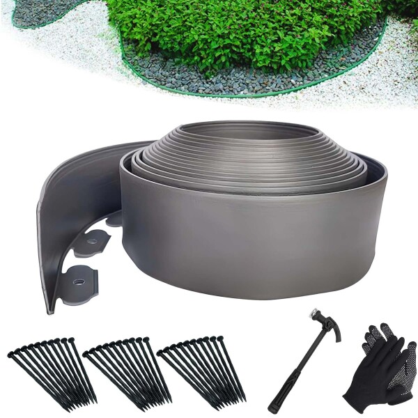 YUNHE ガーデンエッジ フェンス 土留め 園芸シート 土留めフェンスシート 花壇 芝生 根止め ガーデニング DIY 裁断可能 土と芝の根 境界線の分割 庭のデザイン 30本の固定釘 ハンマー 手袋