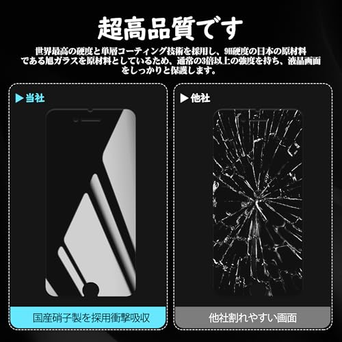 【9H硬度・日本製ガラス素材】日本旭硝子製ガラス素材採用 最上級強度のガラスを使用し表面硬度は9H。万が一スマホを落としてガラスが割れても、 ガラス破片が飛び散らないような安心設計。 飛散防止 、ガラス破片から守ります。