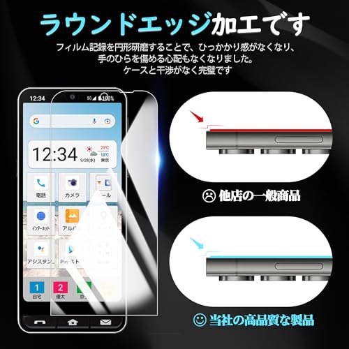 【対応機種】BASIO active SHG09 シンプルスマホ6 sumaho 6 専用ガラスフィルム。【注意】この電話の画面の端は湾曲しているため、保護フィルムのサイズが丁度良い場合、しっかりと貼り付けられず、白いエッジやシェルとの干渉などの問題があるため、保護フィルムは画面よりも小さいです。