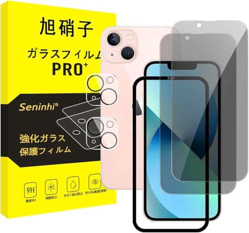 iPhone13 フィルム のぞき見防止 レンズフィルム ガラスフィルム [2枚覗き見防止+2枚レンズ保護+ガイド枠] 強化ガラス 液晶 保護フィルム 横から見えない 硬度9H 耐衝撃 飛散防止 自動吸着 気泡ゼロ 指紋防止 超高質感