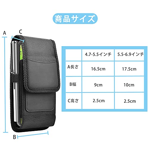 【サイズ】4.7-5.5インチ:縦16.5cm×横9cm×幅2.5cm。スマホ向けに設計されたスマホポーチで、いろんなスマホンをれるのが可能。