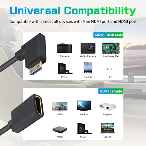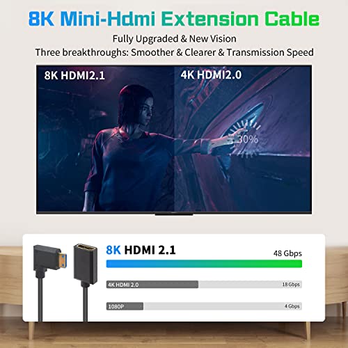 8K L字型 ミニHDMI HDMIケーブル 48Gbps 超薄型ミニHDMI2.1オスメス延長ケーブル プロジェクター / モニター / ビデオカメラ用 (HDMI 2.1) 30cm