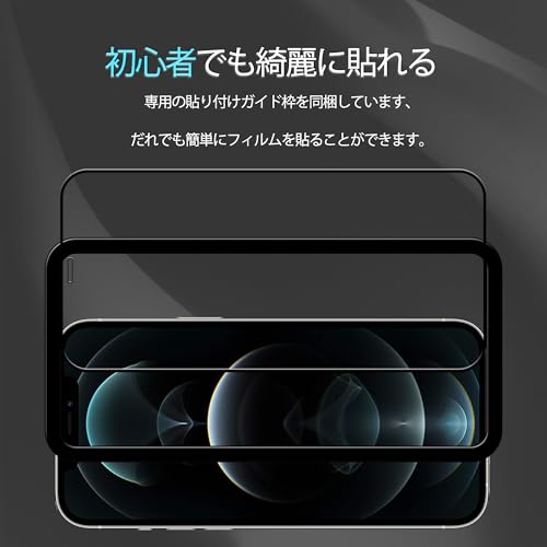 iPhone 12 Pro / iPhone12 ガラスフィルム 強化ガラス カバー 保護フィルム [2枚セット] ガイド枠付き 全面保護