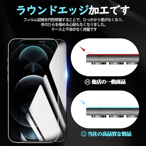 【対応機種】iPhone 12 Pro 用 / iPhone12 用 全面保護 ガラスフィルム。【注意】この電話の画面の端は湾曲しているため、保護フィルムのサイズが丁度良い場合、しっかりと貼り付けられず、白いエッジやシェルとの干渉などの問題があるため、保護フィルムは画面よりも小さいです。