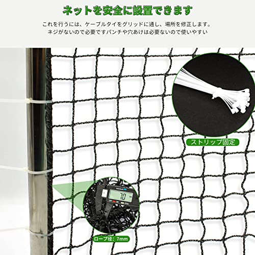 【耐久性のある打撃ネット】各ネットブラックロープの直径は7mm、穴の距離は4cm、UV処理され安定化された2.0mmのプレミアムポリエチレンより糸で長持ちします。 各ネットには30Zipケーブルタイが付いています。