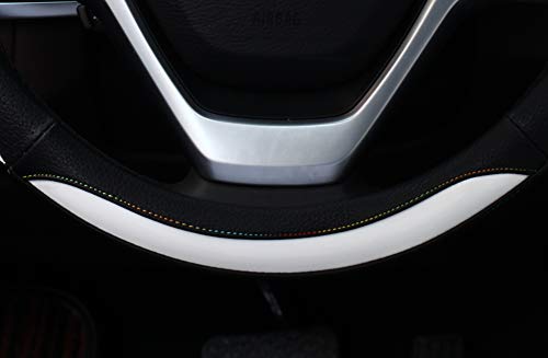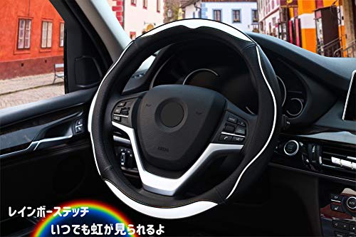 ハンドルカバー 軽自動車 sサイズ ステアリングカバー レインボーステッチ 握り感 オシャレ ホワイト 社外品 代替品