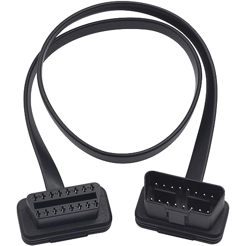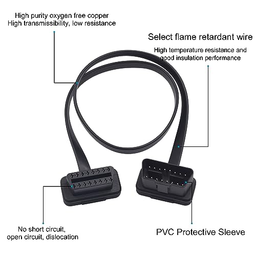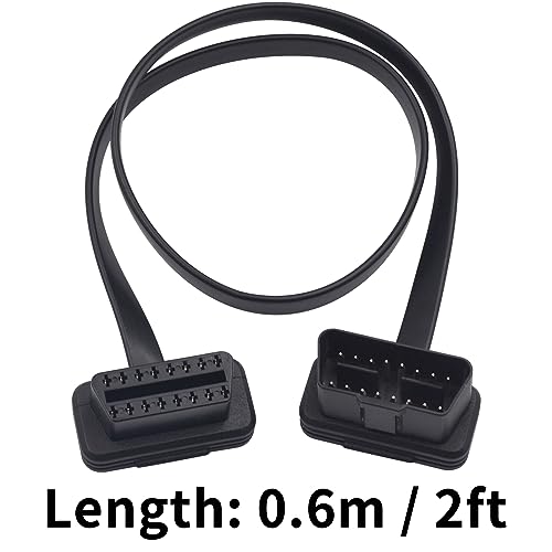 16ピンOBD2延長ケーブルは、OBD2メス形からオス形のアダプターヘッドの面タイプ延長ケーブルで、2フィートの長さで、フラットで低いプロフィールを持っています。