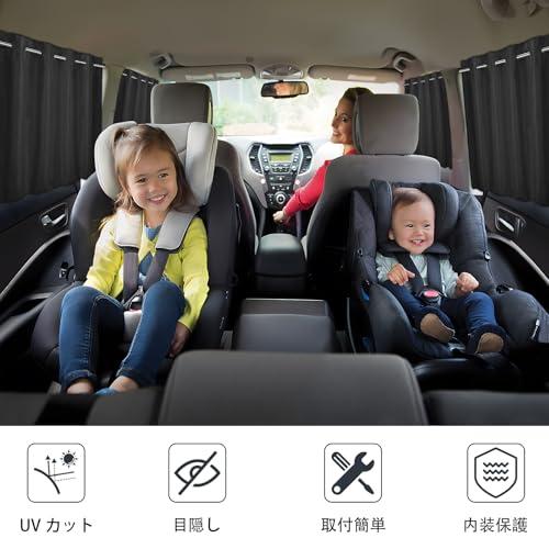 【伸縮棒で繋ぐ】こちらのカーテンは一般的なマグネット式や紐タイプと違い、棒で取付ています。車種問わず、鉄が露出ではなくても、取付が可能で、また、紐タイプような中央垂れにより、光漏れることが一切なく、赤ちゃんが引っ張っても、簡単に落ちることがなく、安心に使用いただけます