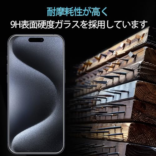iPhone 15 pro ガラスフィルム 強化ガラス iPhone15pro カメラフィルム カバー [2+2枚セット] ガイド枠付き アイフォン15pro 保護フィルム