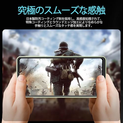 【指紋防止、高感度タッチ】ガラスフィルムには撥油コーティングが施されており、指紋や汚れなどに強くなめらかな操作感を実現、付着した汚れなどは簡単に拭きとれます。こちらは高耐久撥油コーティングが施され、つるつるな滑り感を実現!ゲームしても渋