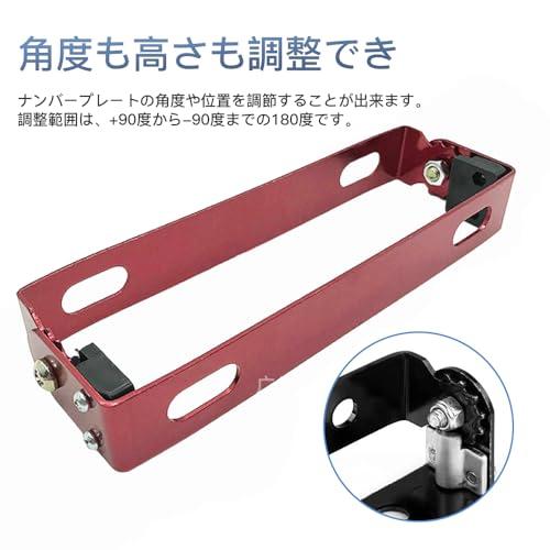 バイク用 ナンバープレート ブラケット ステンレス製 簡単取付 汎用 ナンバーステー 180°角度調整 原付 含ネジとレンチが (レッド)