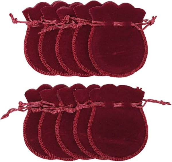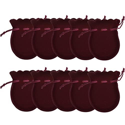 巾着袋 ベロア調 ジュエリーポーチ アクセサリー保存 多機能 ギフトバッグ 小物入れ ラッピング プレゼント用収納袋 (ワインレッド 10枚入り) 送料無料