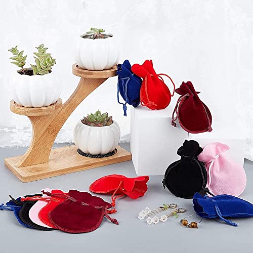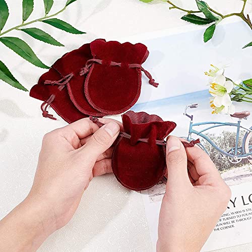 巾着袋 ベロア調 ジュエリーポーチ アクセサリー保存 多機能 ギフトバッグ 小物入れ ラッピング プレゼント用収納袋 (ワインレッド 10枚入り)