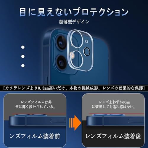 iPhone 11 / iPhone 12 mimi カメラフィルム レンズフィルム カメラ保護 フィルム 液晶 保護フィルム レンズ 保護カバー 超耐久 高光沢 超薄型 露出オーバー防止 防滴 薄型 硬度9H 防指紋 衝撃吸収 高透過率 貼り付け簡単 全面保 [2枚セット]