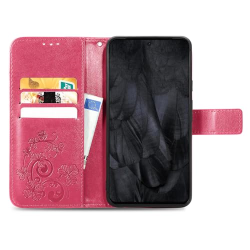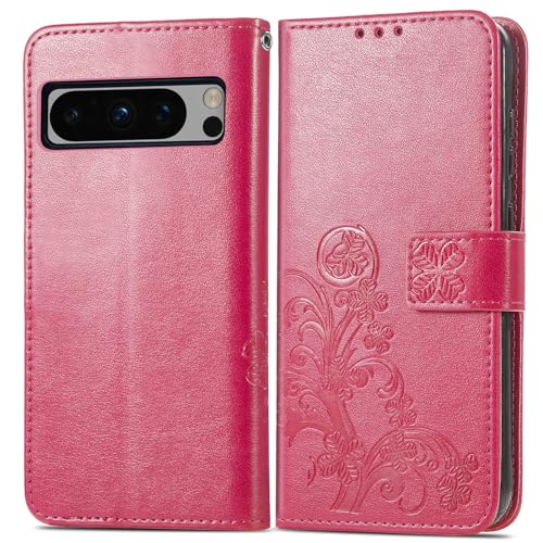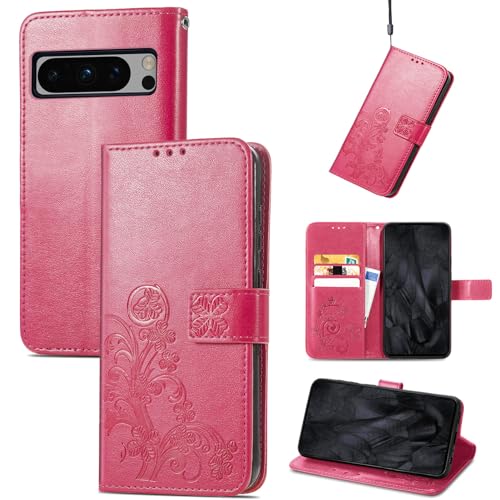 Google Pixel 8 Pro ケース 手帳型 四葉のクローバー エンボス加工 PUレザー フリップ 薄型 軽量 カード収納 革ケース マグネットブラケット TPU シリコンベース 363°フルプロテクション