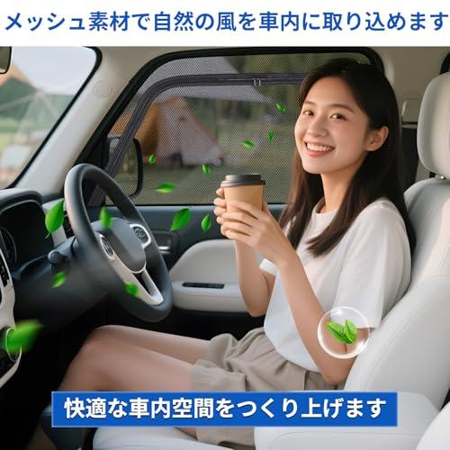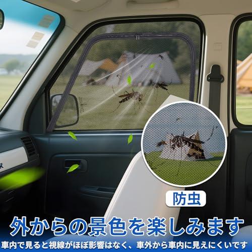 【防虫性・通気性抜群】この防虫ネットは細かいメッシュ生地を使用しており、車内への害虫や蚊の侵入を防ぎ、自然の風を感じます。日光を効果的に遮断し、メッシュを通して車の外を見ることができ、安心感を与えます。窓を閉めたいときは、取り付けた状態で窓を閉められます