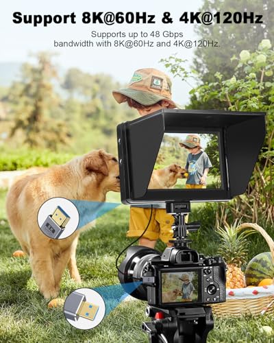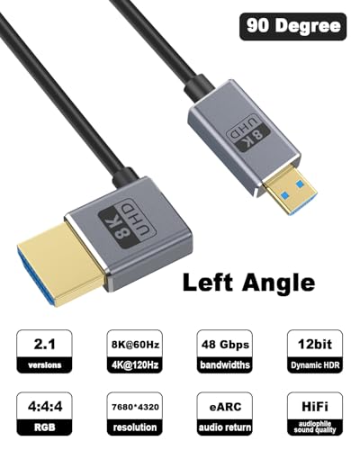 L字型8K Micro HDMI HDMI 2.1変換ケーブル: 8K@60Hz、4K@240Hz、2K@240Hz、1080P/240Hzの解像度を48Gbpsの帯域幅でサポート。PS5でのゲーム、Apple TVでのストリーミングコンテンツ、Xbox Series X/Sでの映画鑑賞など、このケーブルは待ち時間や信号劣化のない優れたパフォーマンスを提供します。