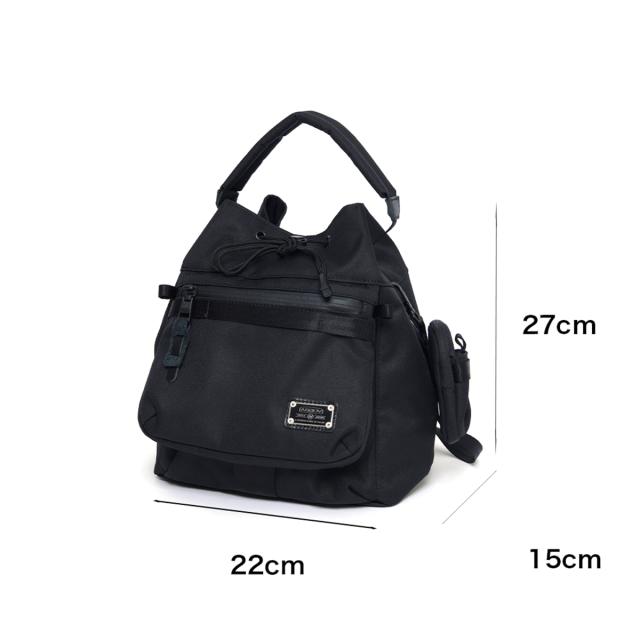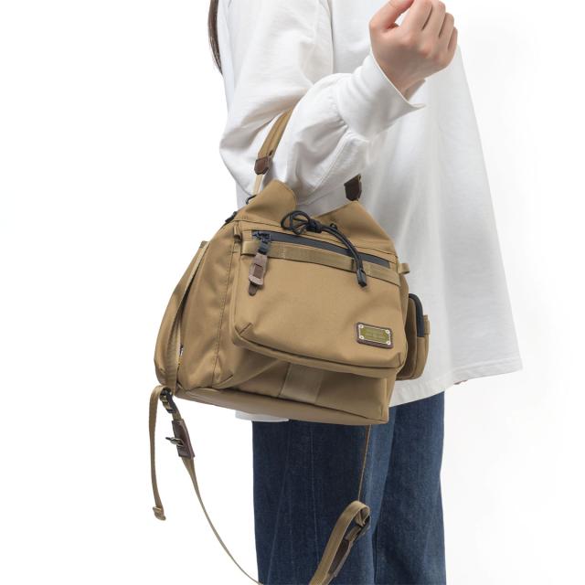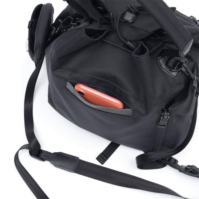 ショルダーパーツを取り外すことにより手持ちの巾着BAGとしても使用可能。その時の気分や持ち物で気軽に変更できます。
