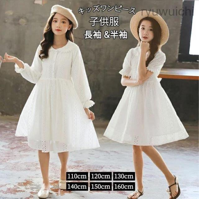 ドレス ワンピース 子供 レース ジュニア パーディードレス 女の子 セレモニードレスドレス 長袖 春 秋 冬 Aライン チュールスカート ふわふわ 可愛い プリン