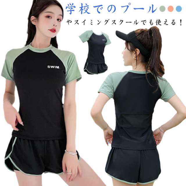 スクール水着 キッズ水着 セパレート スクール水着 半袖 上下セット 女児 ショートパンツ 水陸両用 プール 女の子 子供 学校 小学生 女子 UVカット セットアップ 中学生 スイミング 水泳 競泳 授業 シンプル
