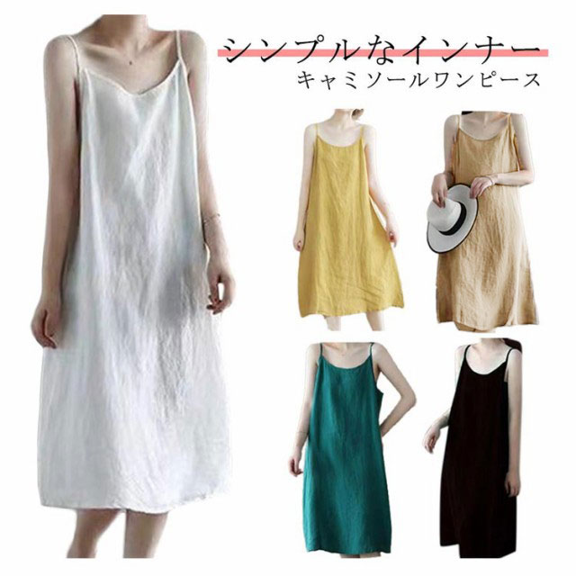 インナーワンピース キャミソールワンピース 綿 ノースリーブ ペチコート キャミワンピース 無地 レディース 重ね着 大きいサイズ インナーワンピース ロング ロングキャミ 体型カバー ナチュラル コットン 重ね着 レイヤード 薄手 シンプル 大きいサイズ