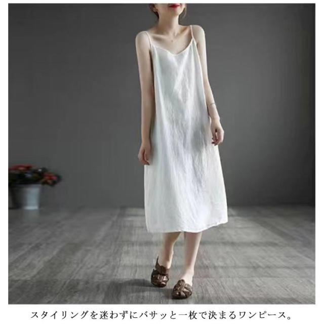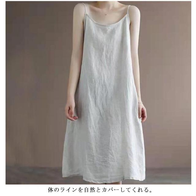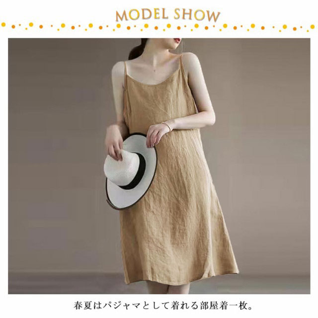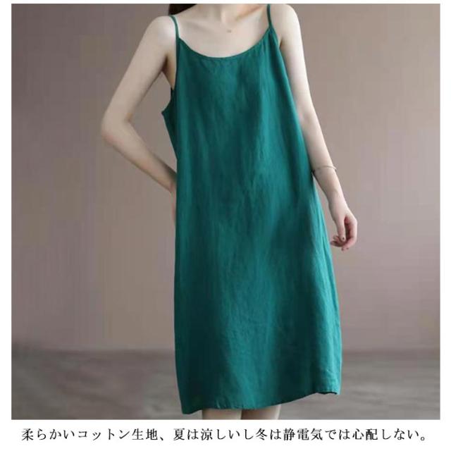 | シンプルなインナーキャミソールワンピース。 春夏はパジャマとして着れる部屋着一枚。 柔らかいコットン生地、夏は涼しいし冬は静電気では心配しない。 体のラインを自然とカバーしてくれる。 スタイリングを迷わずにバサッと一枚で決まるワンピース。 シンプルなデザインなので、トップスとボトムスとも合わせやすく、重ね着が楽しめます♪ | |