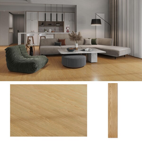 【製品仕様】1枚あたりサイズ:約縦914.2mm×横152.4mm 厚さ:1.5mm 梱包重量:約15kg デザイン:木目調フロアタイル セット数:36枚セット(約3畳分) 素材:床の木目シート表面PVC(SPC)塩化ビニール床材ならではの耐久性にこだわった多機能なフロアタイルです。