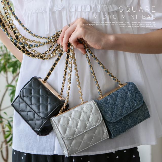 ショルダーバッグ レディース 斜めがけ 大人 軽量 小さめ ミニショルダー マイクロバッグ 肩掛け かわいい スクエア 四角 キルティング チェーンショルダーベルト 小物入れ おしゃれ nsb-30348p 【aroco/アロコ】 春夏 夏バッグ 敬老の日 プレゼント