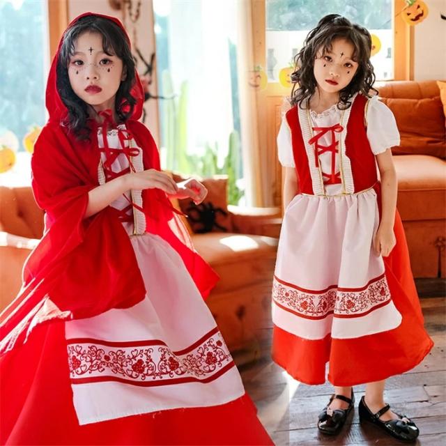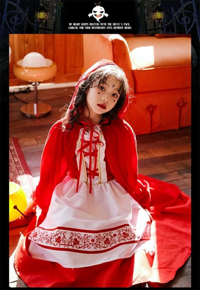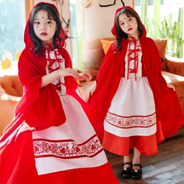 ハロウィン コスプレ衣装風 キッズ 吸血鬼 ヴァンパイア 魔女 子供 子ども用 巫女ロングドレス衣装 子供 仮装 コスチューム 悪役 小学生 ハロウィンパーテイ プレゼント 可愛い ハロウイン