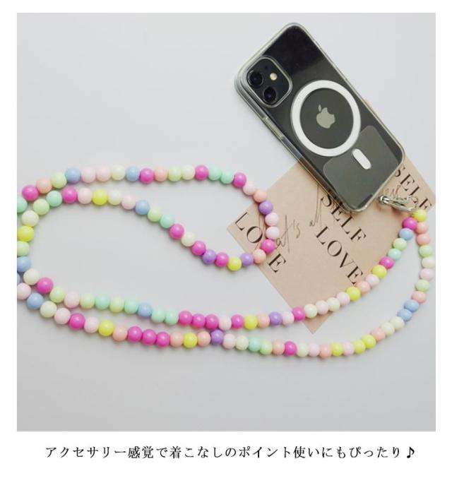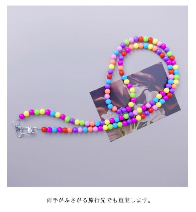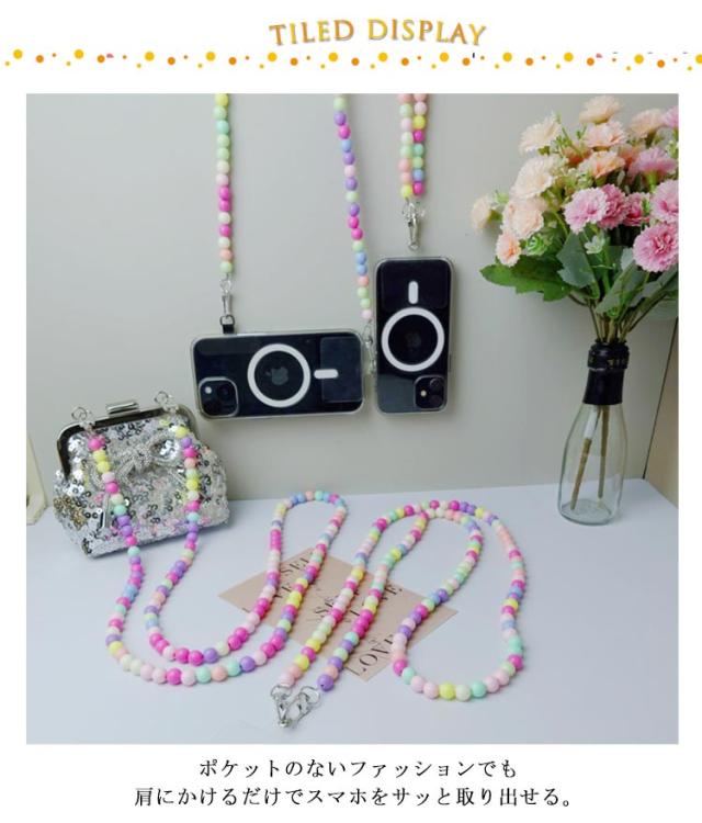 スマホショルダーストラップ ビーズ 虹色 カラフル スマホショルダー ストラップ ビーズストラップ 首掛け 斜めがけ 肩掛け ロング スマホストラップ スマホ 携帯 ショルダーストラップ 挟むだけ 韓国風 大人 かわいい おしゃれ 【送無】