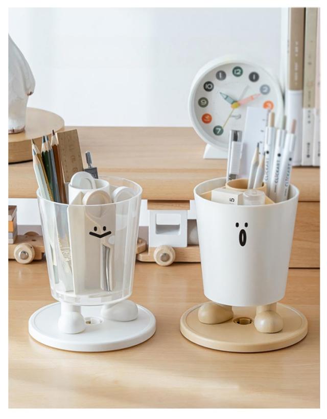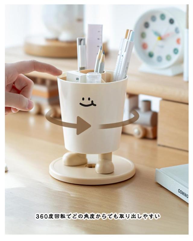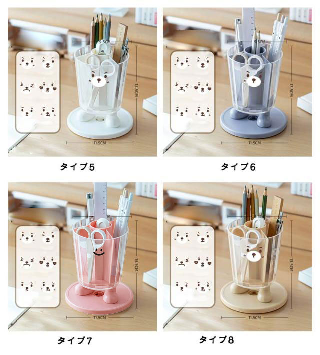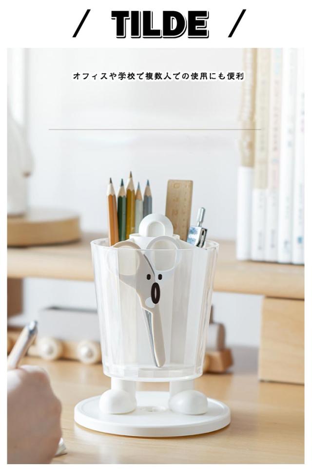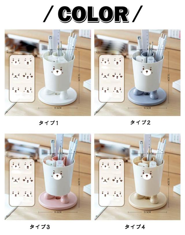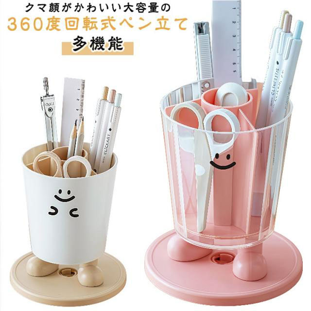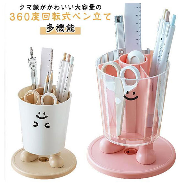 回転式 ペンスタンド ペン立て 大容量 小さめ ペン入れ ペンホルダー クマ顔 おしゃれ かわいい スリム コンパクト 鉛筆立て デスクオーガナイザー 卓上 収納ボックス 卓上収納 小物収納 文房具収納 鉛筆 ペン 【送無】