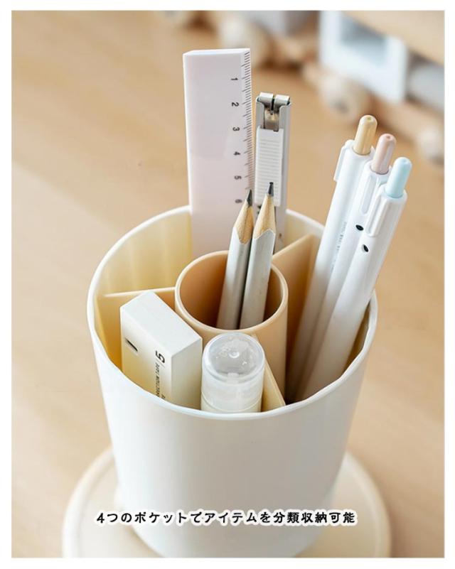 | クマ顔がかわいい大容量の360度回転式ペン立て。 360度回転でどの角度からでも取り出しやすい 4つのポケットでアイテムを分類収納可能 デスクの端に置いても省スペースで使える オフィスや学校で複数人での使用にも便利 | |