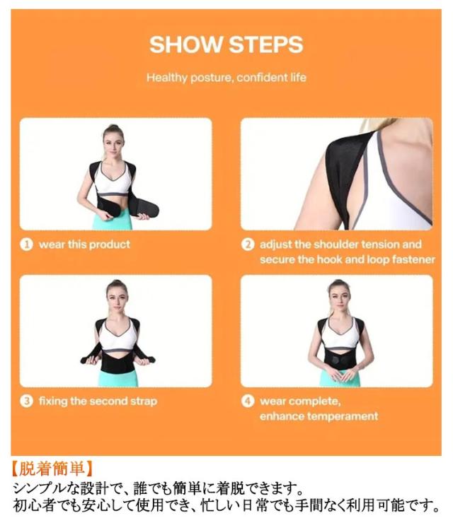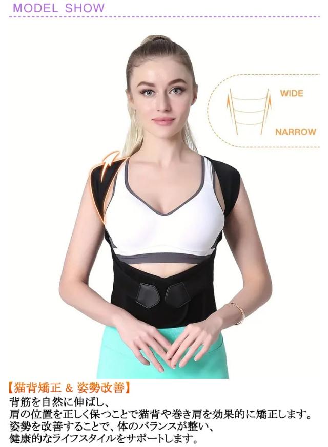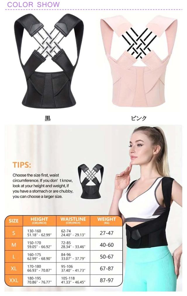 | 日常生活や長時間のデスクワーク、スマートフォンの使用で姿勢が気になる方へ。猫背矯正ベルトは、自然で快適な姿勢をサポートし、背筋を美しく整える理想的なアイテムです。 薄手で目立たないデザインなので、夏場でも快適に使用でき、どんな服装にも合わせやすいです。 子供から大人まで幅広いサイズが揃っており、家族全員での使用が可能です。 【猫背矯正 & 姿勢改善】背筋を自然に伸ばし、肩の位置を正しく保つことで猫背や巻き肩を効果的に矯正します。姿勢を改善することで、体のバランスが整い、健康的なライフスタイルをサポートします。 【通気性抜群】高通気性のメッシュ素材を使用しており、長時間の着用でも蒸れずに快適。特に暑い時期や長時間のデスクワークに最適です。 【自由調整】ベルト部分は調整可能で、自分の体型や好みに合わせてフィット感を自在に調整できます。サイズ調整が簡単で、成長に合わせて長期間使用できます。 【脱着簡単】シンプルな設計で、誰でも簡単に着脱できます。初心者でも安心して使用でき、忙しい日常でも手間なく利用可能です。 【男女兼用・大きいサイズも対応】 男性、女性、子供用のサイズがあり、家族全員で使える設計です。大きいサイズもご用意しており、幅広い体型に対応しています。 【脇の痛みを軽減】脇に負担がかからないよう配慮されたデザインで、長時間の着用でも脇が痛くなりにくいです。 【バストアップ効果】 正しい姿勢をサポートすることで、自然なバストアップ効果も期待できます。 | |
