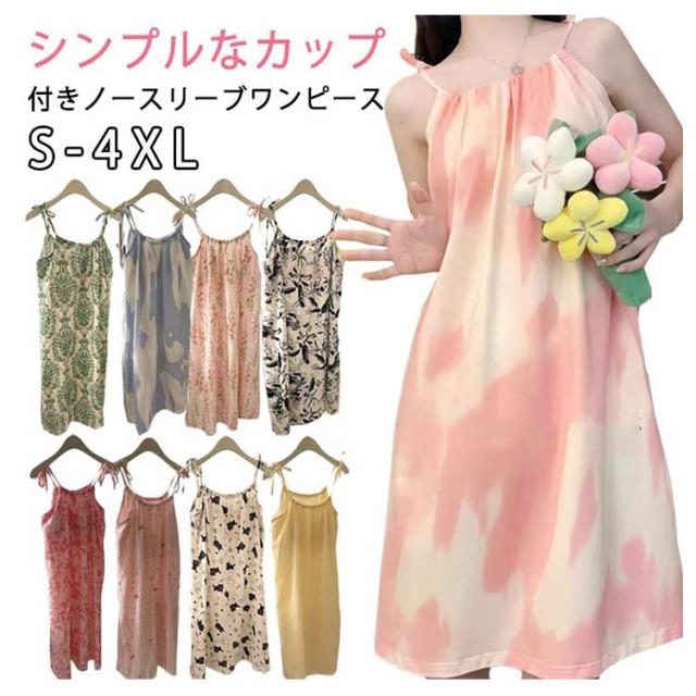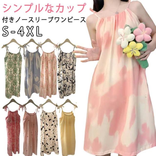パジャマ カップ付き レディース 夏用 キャミワンピ ロングワンピース 柄 キャミソール タンクトップ ノースリーブ 春 夏 薄手 ロング丈 リラックス ルームウェア 可愛い 寝巻き 部屋着 インナー 寝間着 薄手 シンプル 無地 きれいめ