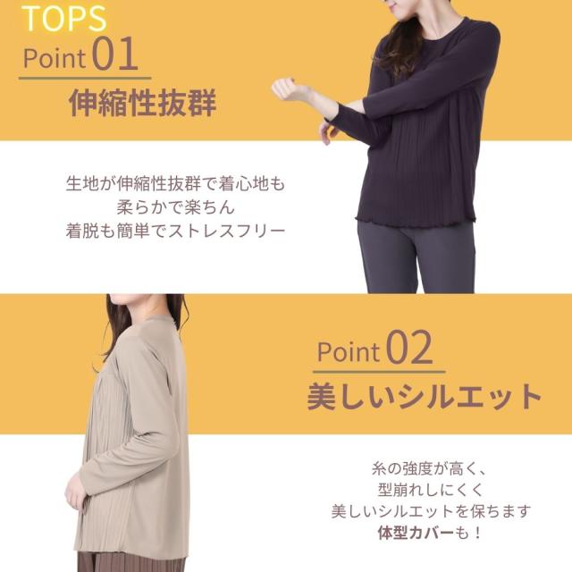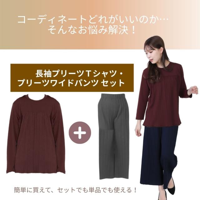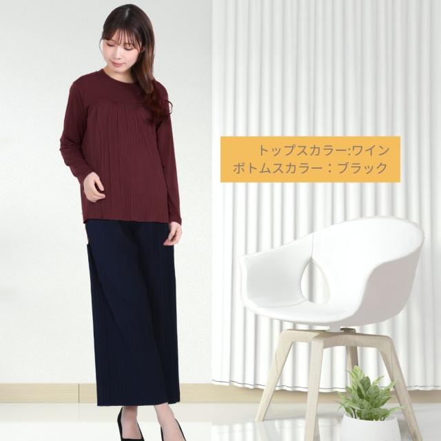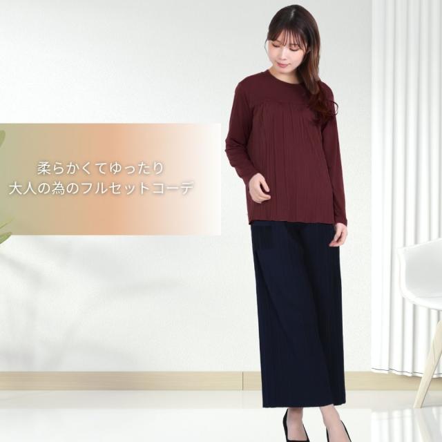 シニア ファッション レディース トップス プリーツ tシャツ 高級感 上下セット 秋 ワイドパンツ ウエストゴム おしゃれ 伸縮性抜群 軽い 柔らかい ゆったり 敬老の日