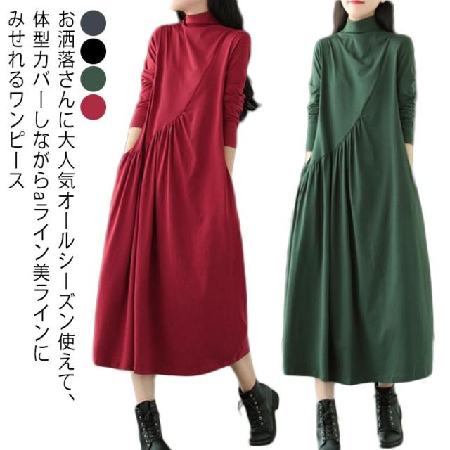 長袖 ロングワンピース ロング 大きいサイズ レディース ワンピース ストレッチ ポケット ボリューム ママ ワンピース 着やすい マキシ丈 長袖 aライン 大人 きれいめ 大きいサイズ ビッグシルエット 秋新作 秋服 春服 冬服