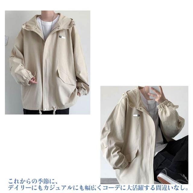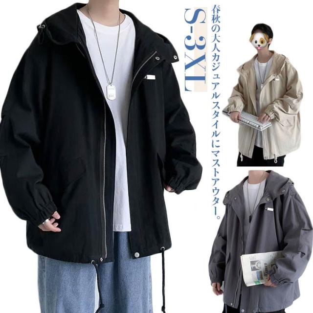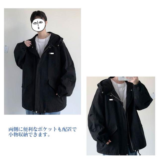 大きいサイズ マウンテンパーカー ジャンパー マウンテンパーカー ゆったり 春 ジャンパー コートアウター 無地 メンズ フード付き ミリタリー アウター ブルゾン ウインドブレーカー 韓国ファッション 春 秋 冬 アウトドアウェア 登山ウェア