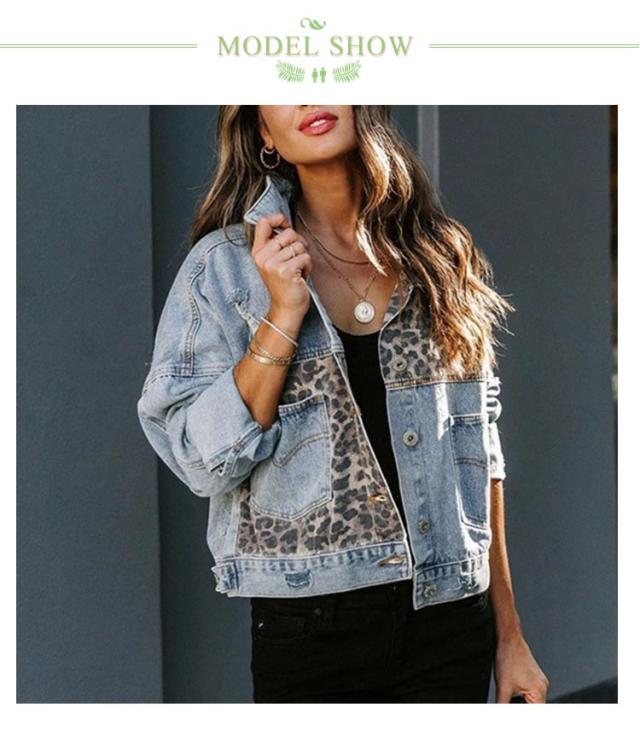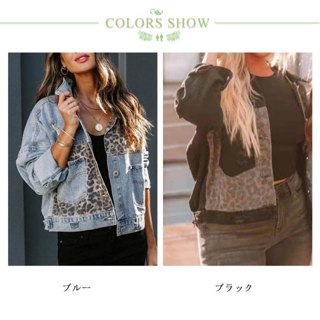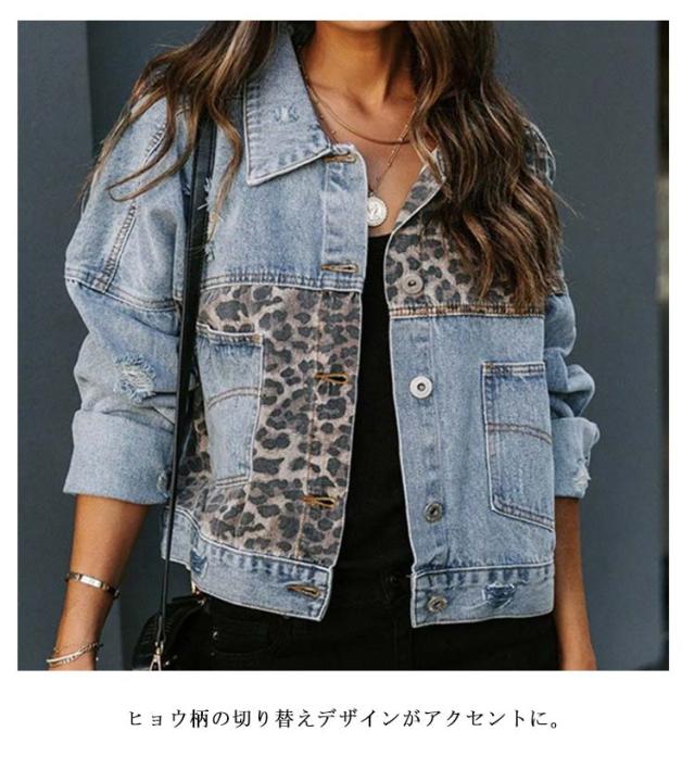 デニムジャケット レディース 羽織り 長袖Gジャン ショート丈 ヒョウ柄 切り替え 春 デニムジャケット デニムジャケット アウター 秋 カジュアル 大きいサイズ デート お出かけ シンプル