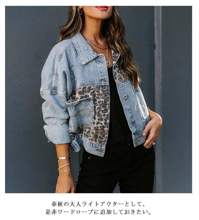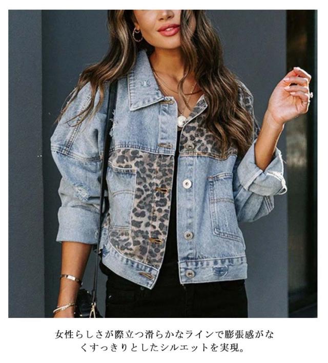 レディース 切り替え デニムジャケット アウター ショート丈 デニムジャケット 羽織り 長袖Gジャン ヒョウ柄 お出かけ 春 秋 カジュアル 大きいサイズ デート デニムジャケット シンプル
