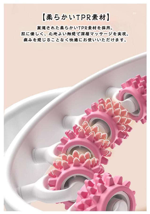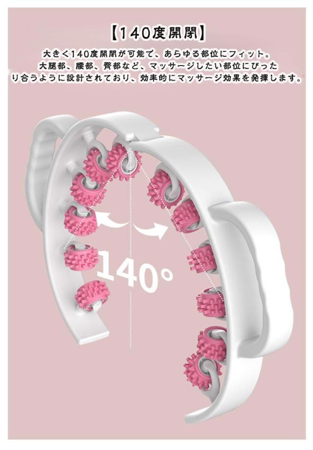 | 【360°全方向からマッサージ】 全方位からアプローチするデザインにより、 疲れた筋肉をしっかりとほぐし、リフレッシュ効果を実感できます。 【柔らかいTPR素材】 厳選された柔らかいTPR素材を採用。 肌に優しく、心地よい触感で深層マッサージを実現。 痛みを感じることなく快適にお使いいただけます。 【140度開閉】 大きく140度開閉が可能で、あらゆる部位にフィット。 大腿部、腰部、臀部など、マッサージしたい部位にぴったり合うように設計されており、効率的にマッサージ効果を発揮します。 【ストレス解消に最適】 日々のストレスや疲れを軽減し、心身のリフレッシュにも最適♪ 仕事の合間やリラックスタイムにおすすめ! | |