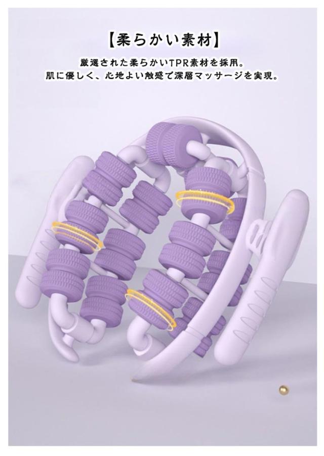 | 【360°全方向からマッサージ】 全方位からアプローチするデザインにより、 疲れた筋肉をしっかりとほぐし、リフレッシュ効果を実感できます。 【柔らかい素材】 厳選された柔らかいTPR素材を採用。 肌に優しく、心地よい触感で深層マッサージを実現。 痛みを感じることなく快適にお使いいただけます。 大腿部、腰部、臀部など、マッサージしたい部位にぴったり合うように設計されており、効率的にマッサージ効果を発揮します。 【ストレス解消に最適】 日々のストレスや疲れを軽減し、心身のリフレッシュにも最適♪ 仕事の合間やリラックスタイムにおすすめ! | |
