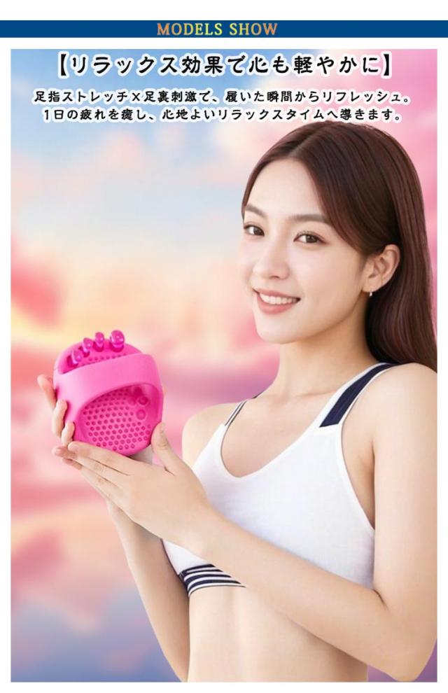 | 【履くだけで美脚ケア・巡りサポート】 特殊設計のインソールが足裏のツボを優しく刺激。歩くだけで巡りを整え、むくみを軽減。スッキリ引き締まった美脚ラインへ導きます。 【アーチサポートで自然な姿勢補正】土踏まずをしっかり支える立体アーチが重心を安定させ、自然と正しい姿勢に。美しい立ち姿・歩き姿をサポートします。 【美しさと健康を同時にサポート】履くだけで美脚・姿勢・健康の3方向からアプローチ。通勤や家事、オフィスでも、日常の一歩一歩がセルフケアに変わります。 【履くだけの簡単習慣】忙しい毎日でも、特別な時間も場所も不要。ただ履くだけでケアができるから、無理なく続けられます。毎日の“ながら美容”に最適! 【リラックス効果で心も軽やかに】足指ストレッチ×足裏刺激で、履いた瞬間からリフレッシュ。1日の疲れを癒し、心地よいリラックスタイムへ導きます。 | |
