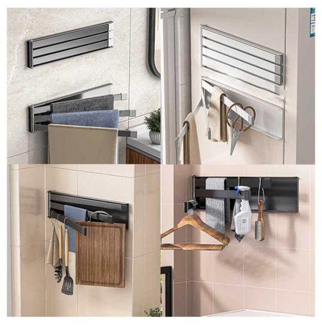 | 壁面に取り付け可能なふきん掛け。 キッチンのタイル壁や冷蔵庫を有効活用して省スペースに設置が可能! 畳んで収納できるスリム設計で、布巾や手拭きタオル掛けにも | |