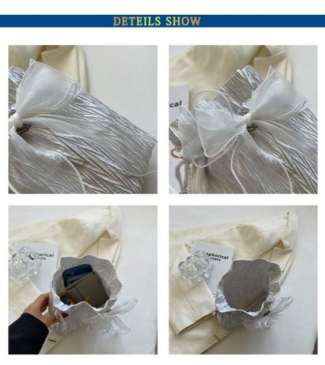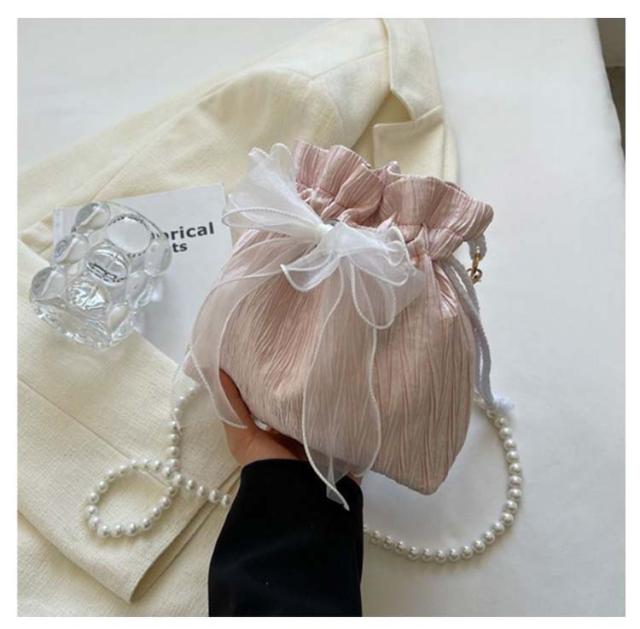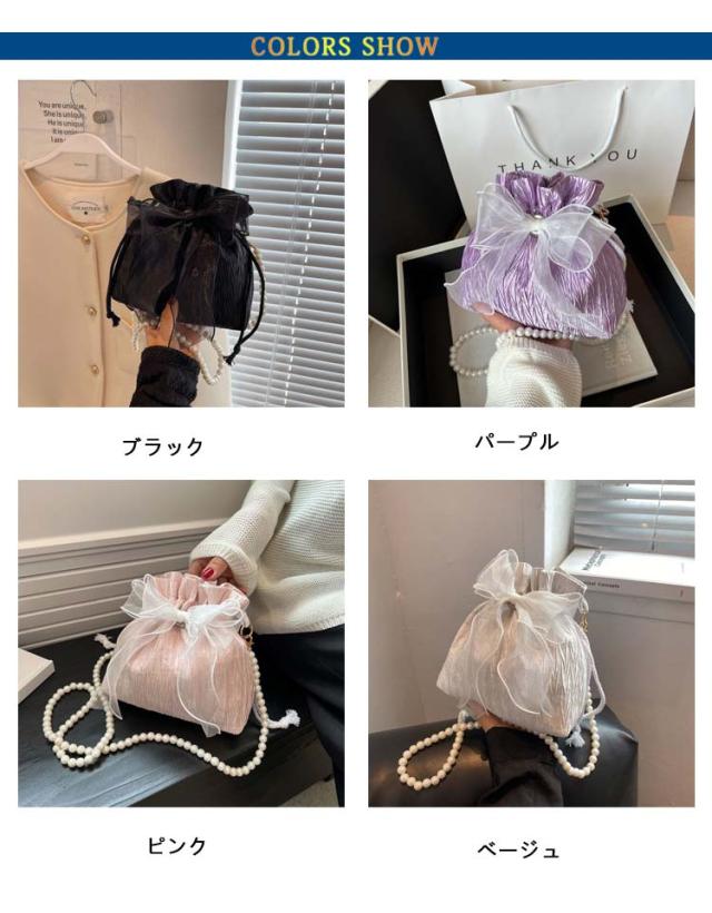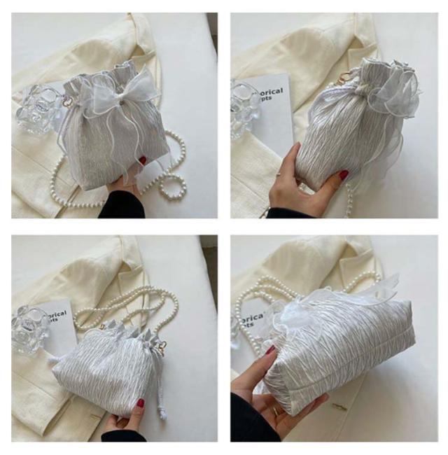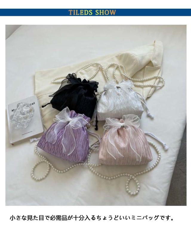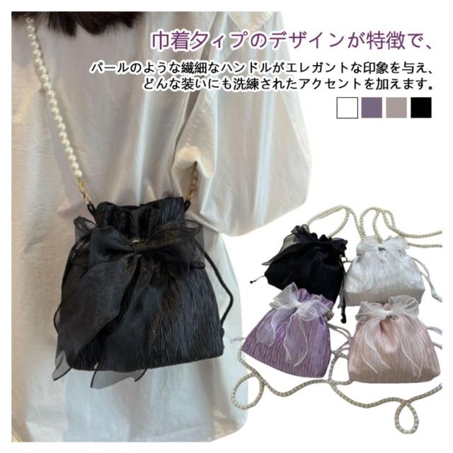 | 巾着夕ィプのデザインが特徴で、パールのような繊細なハンドルがエレガントな印象を与え、どんな装いにも洗練されたアクセントを加えます。 コンパクトな見た目ながら、普段持ち歩くものを十分に収納できるサイズ。 日常使いから特別な日まで幅広く活躍します。 小さな見た目で必需品が十分入るちょうどいいミニバッグです。 光沢のある生地がちらりと高見えテザイン。表面はジャガ一ド加工されており、高彼感をプラス。 | |