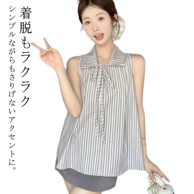 ブラウス レディース ストライプ ノースリーブブラウス トップス 無地 ノースリーブ ゆったり シャツ 夏 夏コーデ おしゃれ かわいい ブラウス フォーマル きれいめ 夏用 シンプル 薄手 オフィス カジュアル 20代 30代