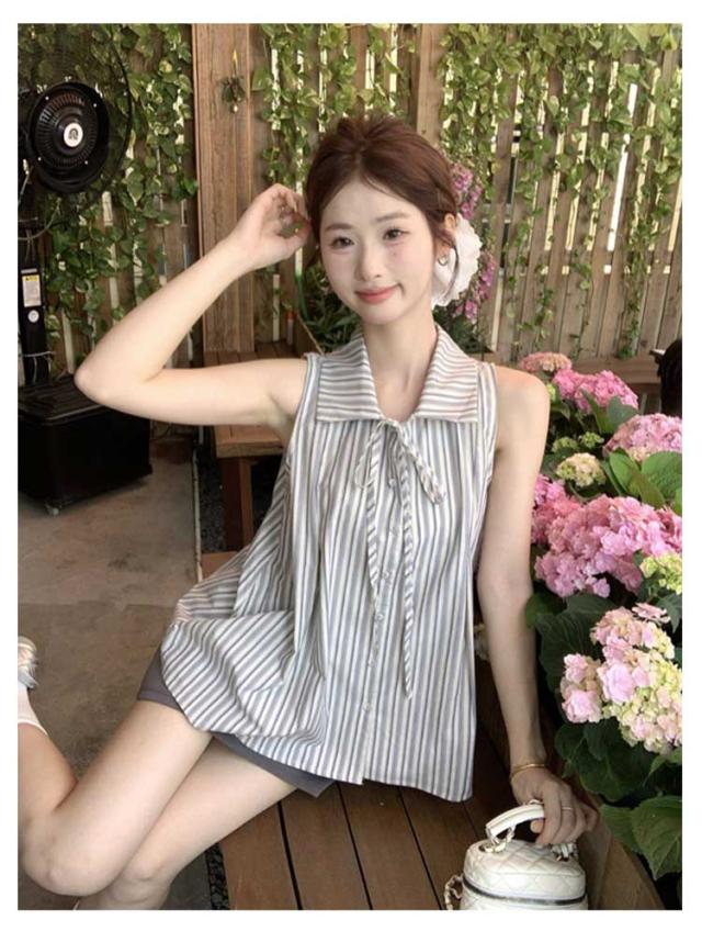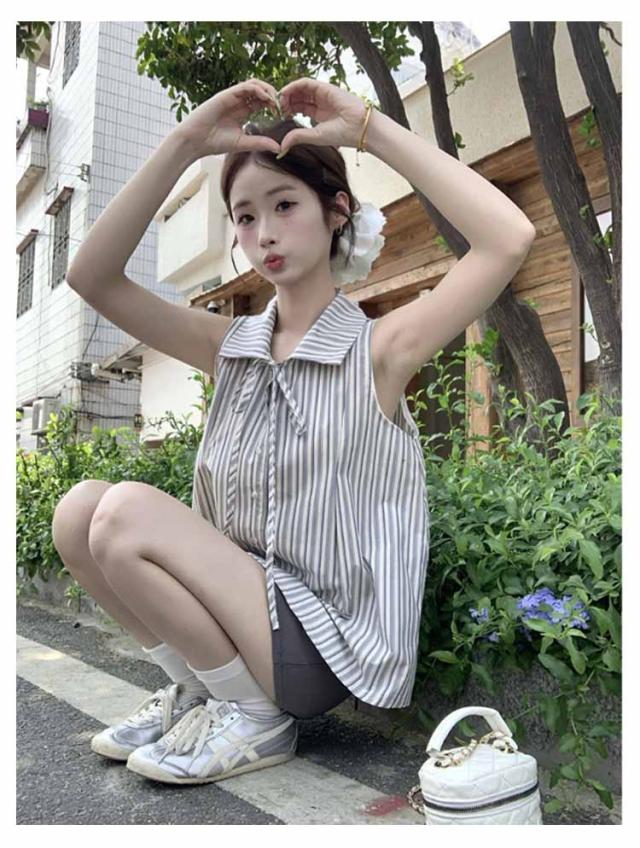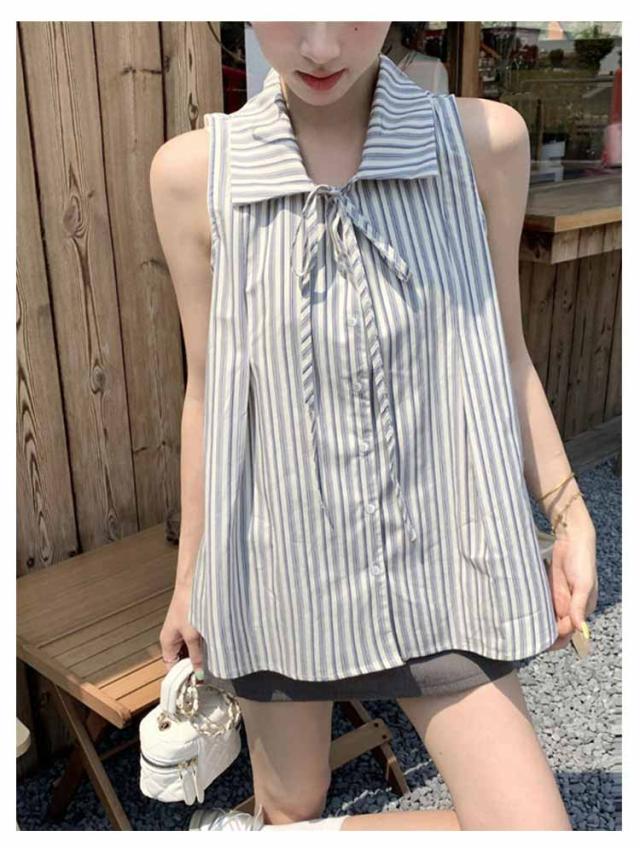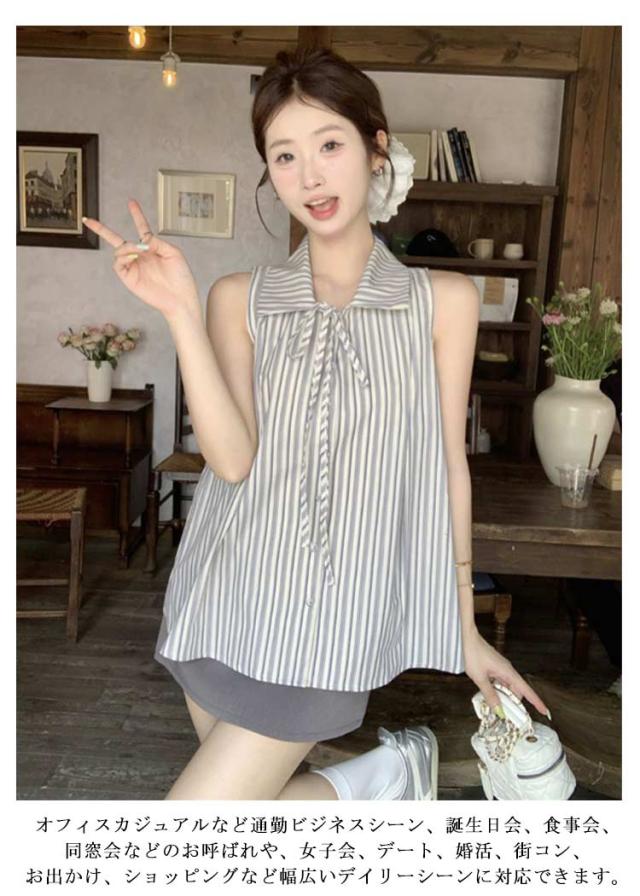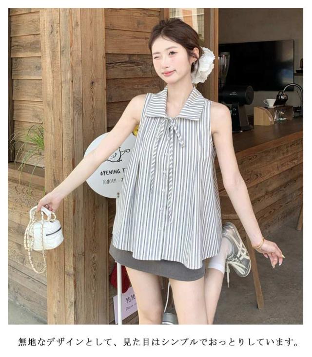 ブラウス ノースリーブ シンプル 夏 トップス ゆったり ブラウスシャツ レディース シャツ ストライプ 夏コーデ ノースリーブブラウス かわいい おしゃれ ブラウス きれいめ 夏用 フォーマル 薄手 オフィス カジュアル 20代 30代
