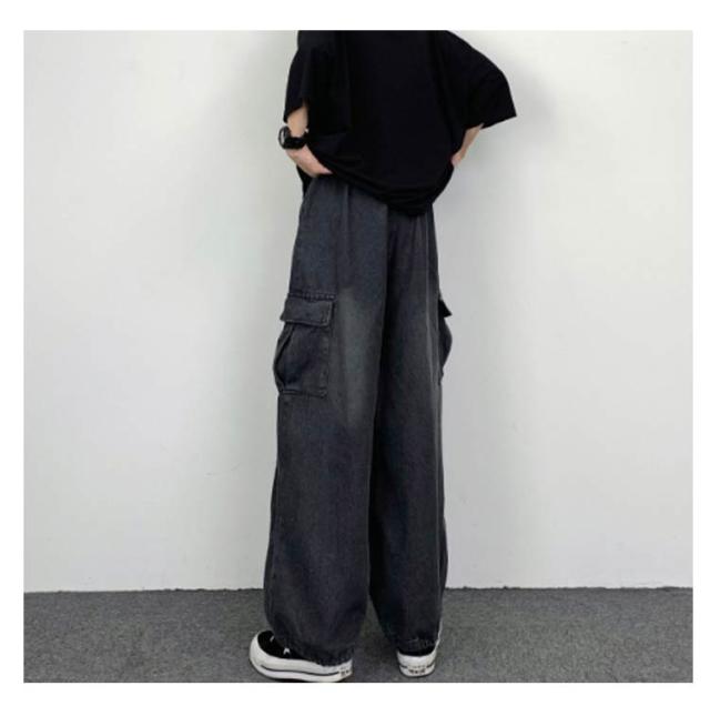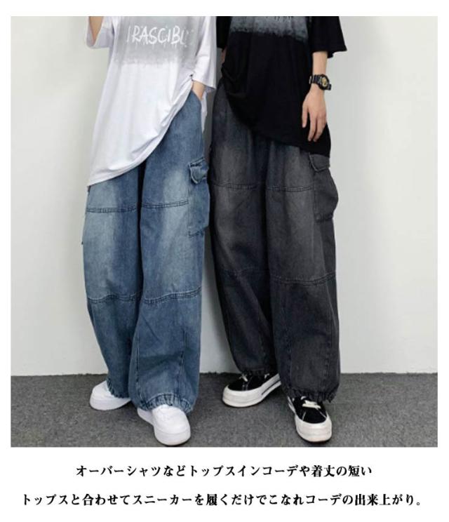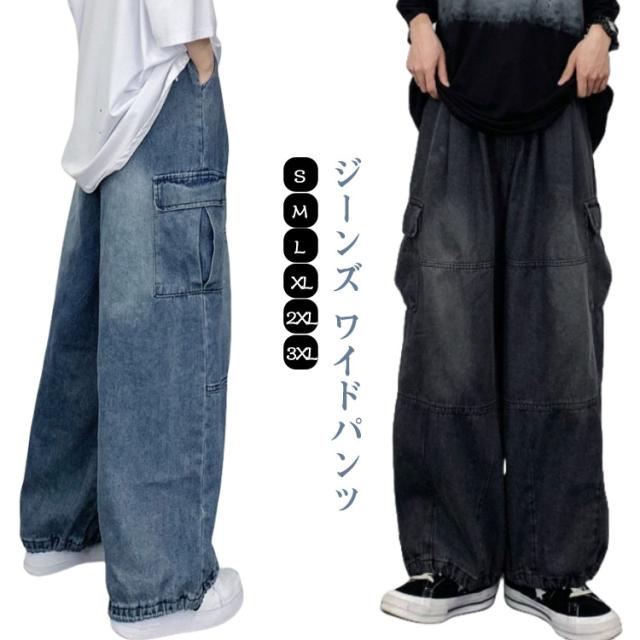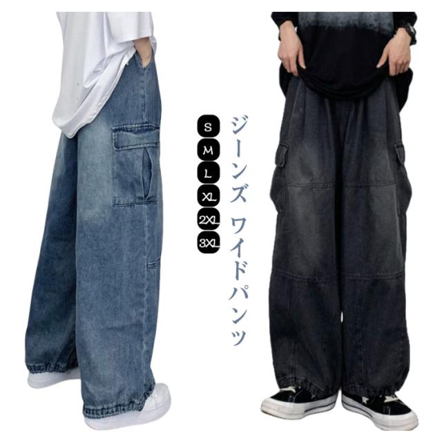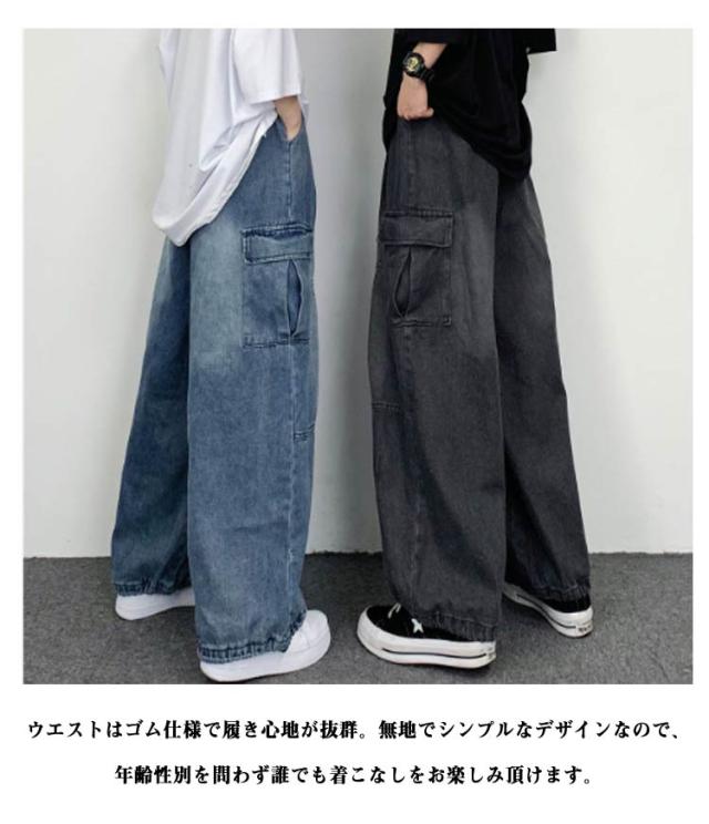 レディース ジーンズ メンズ カジュアル パンツ ワイド おしゃれ ゆったり カーゴパンツ ズボン カーゴパンツ ワイドパンツ 体型カバー デニム レディース 大きいサイズ シンプル 春 ハイウェスト 秋冬 きれいめ 美脚 ワイド 通勤 カーゴパンツ 韓国ファッション ゆったり